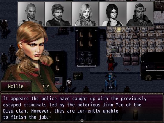 City of Chains erzählt eine grundsolide Cyberpunk-Story, welche ihre Inspiration natürlich von anderen großen Titeln wie Deus Ex bezieht. Es macht Spaß die Handlung mitzuverfolgen und zu beeinflussen, denn City of Chains bietet einen durchaus soliden Umgang mit Choices & Consequences – auch hier grüßt uns wieder Deus Ex. Neben einigen “Wer lebt und wer stirbt“-Entscheidungen, gibt es Sidequests die ineinander greifen und natürlich verschiedene Endings. Die Charaktere fügen sich darüber hinaus gut in die Spielwelt ein, vor allem da man in den meisten Fällen starre Schwarz-Weiß-Muster vermieden hat. So entpuppt sich der fanatische Polizist als liebender Familienvater und der Protagonist geht auf Wunsch des Spielers auch mal über Leichen. Leider hat man es versäumt ausreichend Hintergrundinformationen in dieses Spieluniversum einzubauen. Die Stadt in der das Spiel stattfindet hat ja noch nicht mal einen Namen bekommen und von der Welt außerhalb der Stadt erfährt man so gut wie gar nichts. Ein komplexes Cyberpunk-Universum á la Deus Ex oder Shadowrun sollte man also definitiv nicht erwarten. Aber abgesehen davon wird grundsolide und unterhaltsame Kost geboten. Das ist für ein RPG-Maker-Spielchen durchaus eine runde Sache.
