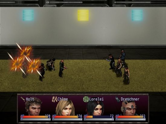 Und an dieser Stelle kristallisiert sich dann auch schon das größte Problem von City of Chains heraus. Das Spiel mag zwar innovative Ideen (zumindest für RPG-Maker-Standards) einbringen, doch sind diese zum Teil etwas arg unausgereift. Was nützt schon ein Heilstationen- und Moral-System, wenn derlei Spielelemente durch Selbstregeneration und Save-Scumming unbrauchbar gemacht werden können. Gute Ideen alleine reichen halt nicht aus, doch glücklicherweise gibt es auch viele Dinge, die vernünftig umgesetzt wurden. Wie gesagt gibt es keine klassischen Level-Ups, Erfahrungspunkte oder Zufallskämpfe. Jeder Gegner im Spiel wurde bewusst platziert, und nicht jeder Gegner muss auf klassische Weise bekämpft werden. Das wäre ohnehin nicht sinnvoll, da die Kämpfe kräftezehrend sind und es lediglich einige Geldeinheiten und Gegenstände als Belohnung gibt, was den Mehraufwand der Kampfressourcen (Munition, Moral, Lebensenergie) nicht immer wert ist.