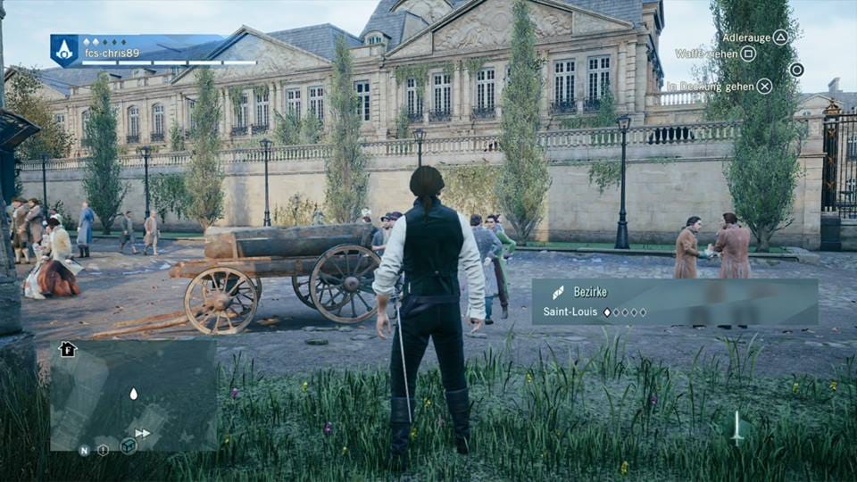 Um eines schon vorwegzunehmen: Die Entwickler von Assassin’s Creed Unity hat nicht zu viel versprochen, denn Paris sieht richtig „awesome“ aus. Die Straßen mit den vielen schön gestalteten Gebäuden, welche nun auch teilweise begehbar sind sowie die lebhaften Gassen hinterlassen beim Anspielen einen richtig guten Eindruck. Viele der Einwohner gehen ihrem Alltag nach oder üben ihren Beruf aus. Eine Lebenssimulation à la Sim City sollte man jedoch nicht erwarten. Dennoch führen die Pariser in den einzelnen Stadtteilen unterschiedliche Lebensstandards. Es gibt die ärmlichen Slums der Arbeiter, das prunkvolle Nobelviertel und lebhafte Amüsierbezirke. Zwar besuchen wir, abgesehen von der eher unspektakulären Kleinstadt mit dem dazugehörigen Schloss Versailles keine anderen Schauplätze, doch die schiere Größe und Dichte des virtuellen Paris entschädigt dafür umso mehr. Die Stadt der Liebe sieht einfach richtig hübsch aus mit seinen berühmten Sehenswürdigkeiten wie dem Louvre oder Notre Damé. Auch den Eiffelturm dürfen wir in einem besonderen Abschnitt des Spiels erklimmen.