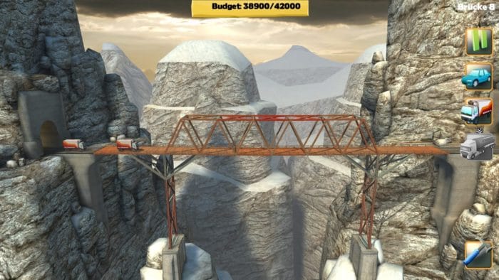Sobald die Brücke steht, kann sie auch schon getestet werden. Hierzu fahren entweder zwei Pkws oder Trucks über das Gebilde. Farbliche Indikatoren zeigen die aktuelle Auslastung der einzelnen Segmente an, die brechen, sollte die Last zu groß werden. Hält die Brücke jedoch stand, gilt das Bauprojekt als erfolgreich und es geht weiter zum nächsten Szenario. In der Erweiterung Trails gilt es, Züge sicher an das andere Ende zu bringen.