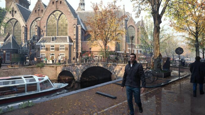 Die zweite Mission, bei der ich vor allem visuell sehr angetan war, führt nach Amsterdam. Die Mission selbst ist spielerisch wieder ziemlich öde und kurz, aber was die Entwickler hier dank Photogrammetrie-Technik auffahren, sorgt zwei Jahre nach Erscheinen der aktuellen Konsolen tatsächlich für Next-Gen-Feeling. Das hier übermäßig viele Shader zum Einsatz kommen und die Lichtstimmung weniger authentisch wirkt und vor allem dem Auge gefallen soll, ist geschenkt.