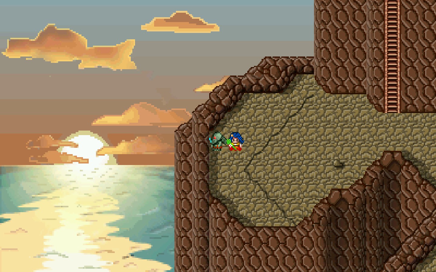 Der nennenswerteste Unterschied zwischen Breath of Death VII und Cthulhu Saves the World ist der grafische Spung von Pseudo 8-Bit- zu Pseudo 16-Bit-Grafiken. Wo BoD VII noch wie ein NES-Game aussah, wirkt CStW nun eher wie ein frühes Super Nintendo-Spiel. Früh bedeutet, dass die Grafik bei weitem nicht die Finesse von SNES-Klassikern wie Final Fantasy VI oder Chrono Trigger aufweist, sondern eher an ein unspektakuläres Mystic Quest Legend erinnert. Die Locations in CStW wirken zudem größtenteils öde und monoton. Das Game basiert zwar auf den Errungenschaften von H. P. Lofecrafts Cthulhu-Mythos, aber de facto erwarten euch nur uninspirierte Ortschaften wie Höhlen, Dörfer und neblige Wälder. Der obligatorische Vulkan und die Eishöhle dürfen freilich auch nicht fehlen. Ab und zu gibt es auch einige Ausreißer wie eine Fabrik oder ein Raumschiff, aber auch diese Ortschaften wirken irgendwie unspektakulär. Die Dungeons mögen zwar umfangreich sein, wirken in optischer Hinsicht aber sehr repetitiv. Da steckt einfach keine Finesse drinnen.