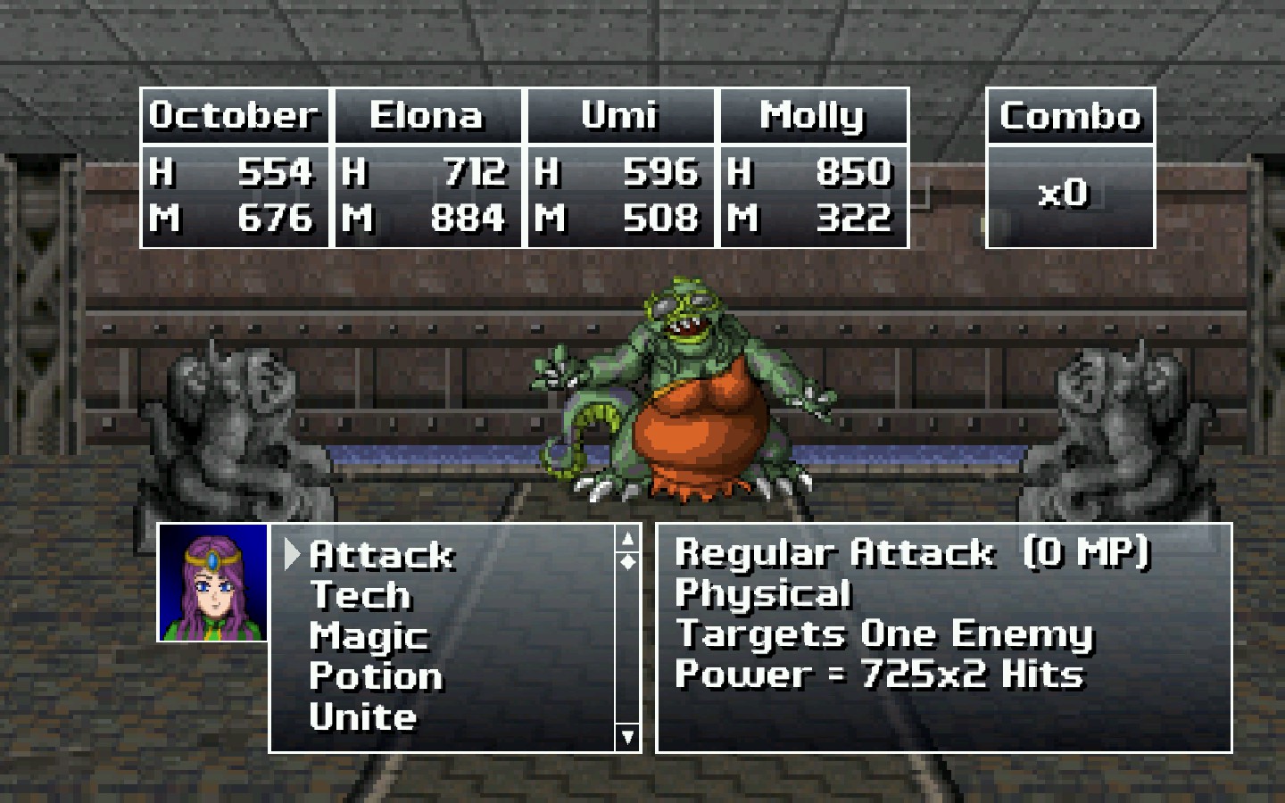 Eine weitere Besonderheiten im Kampf ist das Combo-System. Mit regulären Angriffen oder bestimmten Skills wird der Combo-Zähler nach oben gedrückt. Je höher der Zähler, desto wirksamer gestalten sich bestimmte Combo-Break-Attacken. Eine Taktik besteht also darin sich einen hohen Combozähler aufzubauen und dann eine besonders mächtige Break-Attacke rauszuhauen, um den Gegner den Rest zu geben. Der Haken an der Sache ist jedoch, dass es viele Skills gibt, die den Combozähler unterbrechen – mächtige Heilzauber zum Beispiel. Wer auf effektive Combo-Break-Attacken setzt, wird also auf einige andere wichtige Skills verzichten müssen. Wer glaubt, er könne dieses Treppchen mit Heiltränken (werden hier Potions genannt) umgehen, liegt jedoch nur teilweise richtig. Potions sind endlich und können nicht bei Händlern erworben, sondern nur in Schatztruhen gefunden werden. Die Potions die man hat, sollten also besser sparsam eingesetzt werden. Dafür erweckt eine Potion aber auch einen gefallenen Kameraden wieder zum Leben.