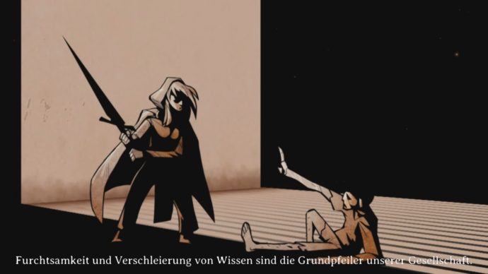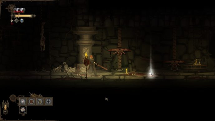 Interessanterweise ist Dark Devotion überaus sparsam, was die Optionen anbelangt. Das einzig Nennenswerte, ist die Option, den Speedrunner-Timer permanent sichtbar zu schalten, um besagte Gamer-Randgruppe anzusprechen. Mir persönlich wäre so etwas wie eine Buttonkonfiguration jedoch wesentlich lieber gewesen. Ich bin mit der vom Spiel vorgegeben Button-Belegung meines Controllers jedenfalls absolut nicht klargekommen, weswegen ich mich nach kurzer Zeit dazu entschlossen habe mit Maus- und Tastatur zu spielen, was dann auch relativ gut funktionierte. Rückblickend ist meine Frustration mit der Controllersteuerung aber teilweise auch darauf zurückzuführen, dass Dark Devotion über keinen Jump-Button verfügt. Es gibt hier und da zwar durchaus kleinere Platforming-Segmente, aber gesprungen wird hier nicht. Und es hat durchaus einige Zeit gedauert, ehe ich dies realisierte und akzeptierte, denn das Spiel erweckt doch den sehr starken Eindruck, dass hier ein Jump-Button für flexiblere Kämpfe und Platforming-Segmente reingehört.