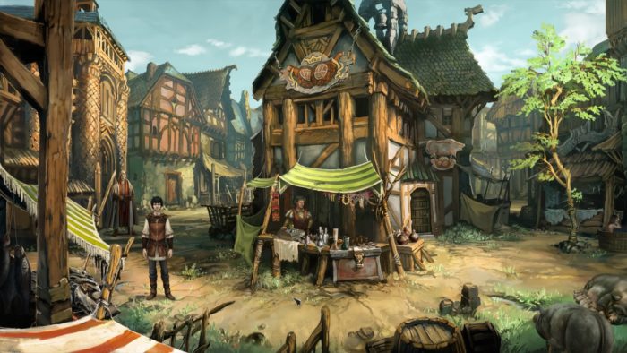 Außerdem unterscheidet sich das Gameplay ein wenig der beiden Charaktere. Die Itemtaschen sind natürlich voneinander getrennt, allerdings spielt auch eine spezielle Sorte der Magier eine wichtige Rolle. Geron kann einen einfachen Zauber wirken, der kaputte Gegenstände repariert oder zerbrechliche zerstört. Eine Wand ist dafür viel zu massiv, aber um beispielsweise eine Flasche zu zerstören und die Splitter als Gefäß zu verwenden ist diese Magie äußerst hilfreich. Außerdem erhält er ein besonderes Amulett, dass ein wenig an „The Night of the Rabbit“ erinnert und auch nach dem dort vorkommenden Marquis de Hoto benannt ist. Mit diesem kann er magische Aktivitäten und Spuren sichtbar machen und so etwa spezielle Gegenstände suchen oder bestimmten Personen folgen. Die letzte Besonderheit ist die Fee Nuri, die als Rabe fliegen und so Geron unterstützen kann. Personen ablenken oder Items holen sind dabei nur einige der Möglichkeiten.