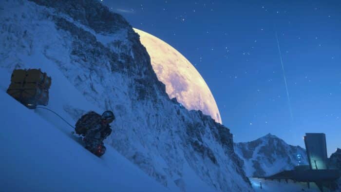 Kojima Productions haben nahezu alle Aspekte verfeinert und gute Erweiterungen und neue Hilfsmittel gefunden, die das Leben von Sam erleichtern. Sofern man diese denn in Anspruch nehmen will. Trotz der Straßen und Seilbahnen die man bauen kann, trotz einer neuen Schnellreisefunktion, trotz eines zum Hoverboard umfunktionierten Hightech-Sargs (!!!) und anderer Fahrzeuge habe ich noch immer den größten Spaß an der einfachen Bewegung zu Fuß. Sich die Spielwelt nach und nach zu erschließen, sich mit Leitern Übergänge zu bauen und mit Kletterhaken von Klippen abseilen zu können, sich später Brücken und andere Konstruktionen zu erschaffen, die nicht nur mein eigenes, sondern dank des asynchronem Multiplayer-Modus auch das Leben anderer Spielerinnen und Spieler vereinfachen, ist für mich nach wie vor unglaublich befriedigend.
