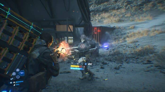 Neben den BTs gibt es außerdem Räuber und andere Banden. Teilweise patrouillieren diese kleine Abschnitte der Spielwelt, in der Regel hocken die Marodeure aber in ihren Lagern. Auch diesen kann man recht gut aus dem Weg gehen, aber DS2 möchte mehr als der Vorgänger, dass man auch mal offensiv agieren muss. Die Kämpfe stehen etwas mehr im Fokus und sind im Vergleich zum ersten Teil auch wesentlich actionreicher. Seinerzeit mochte ich die Auseinandersetzungen mit Gegnern nicht sonderlich, zumal man vom Plot immer wieder eingetrichtert bekommen hat, dass das Töten von Menschen doch bitte zu unterlassen ist. Zur Wahrheit gehört zwar, dass man jede Menge nicht tödliche Waffen an die Hand bekommen hat. Dennoch habe ich Konfrontationen – bis auf nicht anders zu lösende Storyabschnitte – vermieden.
