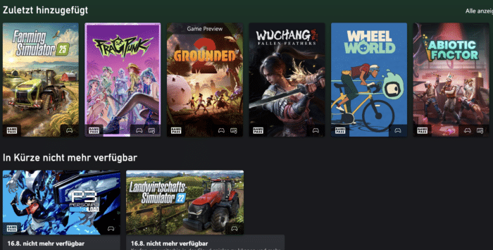 Das sind die neuen Games in dieser Woche oder coming soon für den Microsoft Dienst.