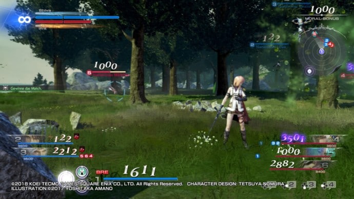 Egal ob offline oder online zusammen und gegen menschliche Mitstreiter, die actiongeladenen Kämpfe in Dissidia Final Fantasy NT finden immer im 3 gegen 3 Modus auf einem weitläufigen Areal statt. Das Ziel ist es, das gegnerische Team zuerst auszuschalten, bevor das eigene in die Knie gezwungen wurde. Besonders auf den Schwierigkeitsgraden Gold und Platin kann sich ein Kampf durchaus ein wenig in die Länge ziehen und für einige Spannungsmomente sorgen.