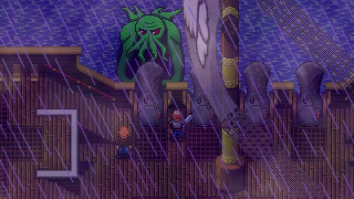Im eigentlichen Spiel sieht die Sache aber etwas anders aus. Am schlimmsten ist das ständige Tearing, welches angesichts der Retro-Optik völlig absurd erscheint. Dann gibt es noch kleinere Grafik-Glitches wie Sprite-Overlaps, oder Gegner die im Kampf außerhalb des sichtbaren Screens positioniert sind.