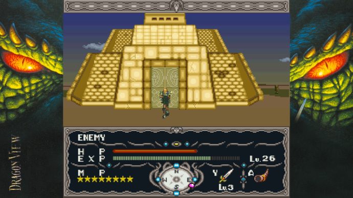 Heutzutage gilt Drakkhen als unspielbarer Krampf, denn das Spiel ist so krude und unkomfortabel, wie man es eben von einem steinalten CRPG erwarten sollte. Vor allem dann, wenn besagtes CRPG auch noch auf eine Konsole portiert wurde. Damals war das Game jedoch erfolgreich genug, um Kemco zu einer SNES-exklusiven Fortsetzung zu motivieren. Die Rede ist vom 1994 veröffentlichten Dragon View (bzw. Super Drakkhen in Japan), eine quirlige Mischung aus RPG und Brawler, die obendrein mit einem gesunden Schuss Zelda angereichert wurde. Und ja, abgesehen vom Schauplatz und der eigenwilligen Oberwelt-Mechanik hat Dragon View nicht mehr viel mit seinem Vorgänger gemeinsam. Leider wurde auch Dragon View niemals in Europa veröffentlicht. Im Gegensatz zum seltsamen Drakkhen ist dies ein echter Verlust, denn Dragon View ist ein Qualitätsprodukt, so viel sei an dieser Stelle schon einmal verraten.