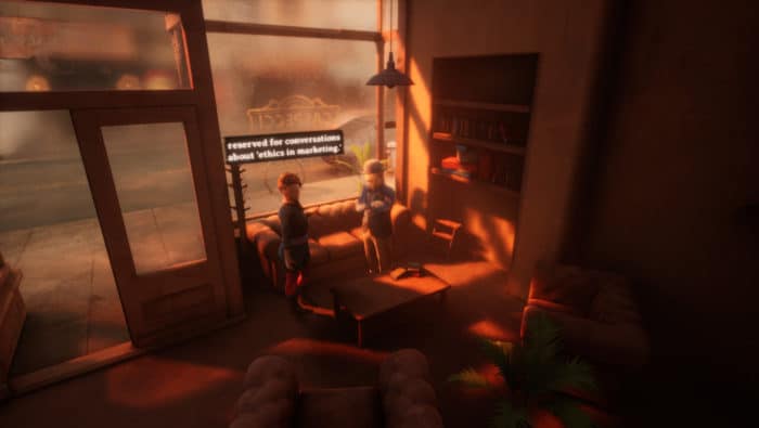 Abseits ihrer sehr eigenwilligen Traumwelt versucht sie Kontakte zu knüpfen und kann unter anderem eine Bar, einen Park oder eine Bibliothek besuchen. Die Charaktere, die ebenfalls gesichtslos sind, teilen nicht immer das Interesse an einem Dialog. So muss sich Cassidy ganz im Visual-Novel-Like herantasten. Ein Geschenk kann manchmal die Barriere brechen und ein Gespräch freischalten.