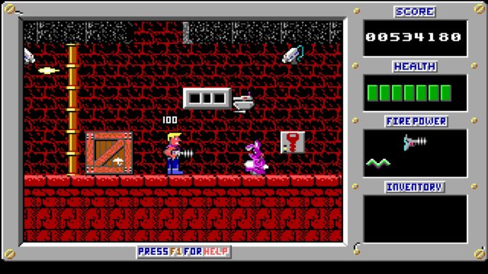 Das Ziel in den ersten 9 Levels einer Episode liegt darin den Levelausgang, welcher in Form einer futuristischen Tür dargestellt wird, zu passieren. Im letzten Level einer Episode geht es freilich darum Dr. Proton aufzuspüren und diesen zu erledigen. Für diese Ziele kann man sich netterweise so viel Zeit lassen, wie man will, denn in Duke Nukem gibt es kein Zeitlimit. Das hat aber durchaus seine Berechtigung, denn es handelt sich hier nicht um ein typisches von links nach rechts scrollendes Hüpfspiel, sondern um einen Action-Platformer, welcher Duke meistens in ein größeres Areal befördert, welches relativ offen aufgebaut ist und oftmals gründlich erkundet werden muss, damit man die notwendigen Schlüsselgegenstände findet, ohne die man den jeweiligen Level nicht meistern kann. Hin und wieder steht man nämlich vor verschlossenen Toren, welche einen spezifischen Schlüssel (kommen in vier Farb-Varianten) oder eine Keycard verlangen. Darüber hinaus gibt es auch Werkzeuge, welche einem für den Rest der jeweiligen Episode erhalten bleiben. Mit den Jump-Boots kann Duke höher und weiter springen, mit der Robohand lassen sich an entsprechenden Kontrollstationen Brücken ausfahren, und mit dem Grapling Hook kann sich Duke an bestimmten Platformen festhangeln und hochhieven.