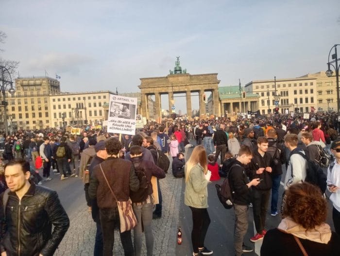 Nach einem längeren Fußmarsch, der Richtung Brandenburger Tor erfolgte, wurde die Wichtigkeit durch weitere Reden untermauert. Die Stimmung blieb auch bis zum letzten Moment friedlich und man hatte aufgrund der Massen das Gefühl, wirklich etwas erreichen zu können. Dies zeigte sich auch bei der Meinungsänderung der SPD wieder. Diese möchte nun bei der Abstimmung am Dienstag gegen Artikel 13 in seiner jetzigen Form stimmen.
