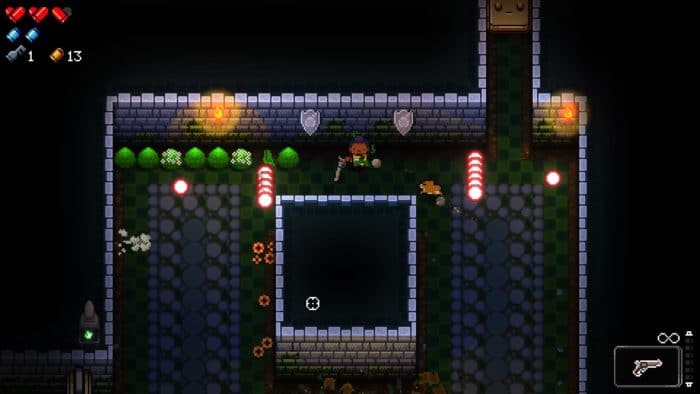 In guter Twinstick-Shooter-Manier ballert ihr euch durch den Gungeon, zu Beginn mit den Starterwaffen und dem einen oder anderen aktiven bzw. passiven Skill. Je weiter ihr voranschreitet, desto wertvollere Ausrüstung landet ihn eurem Inventar. Auf eurer Reise findet ihr neben ernst zu nehmenden Waffen wie einen mächtigen Raketenwerfer oder einer klassischen AK-47, sehr viele Gegenstände, die euch ein Lächeln ins Gesicht zaubern, wie etwa die Unicorn Gun, die einen Regenbogen verschießt oder den Bienenstock, der Bienen auf eure Feinde loslässt. Die Entwickler scheinen dem Namen ihres Entwicklerstudios alle Ehre zu machen, denn neben dem Gebrauch zahlreicher Schießeisen ist die Dodge Roll (Ausweichrolle) eines der wichtigsten Gameplay-Elemente, denn die macht euren Charakter während der Rolle für etwa eine halbe Sekunden unverwundbar. Weiters erhaltet ihr zu Spielbeginn drei sogenannte Blanks, die bei Aktivierung sämtliche Projektive, die über euren Monitor huschen wegfegt.