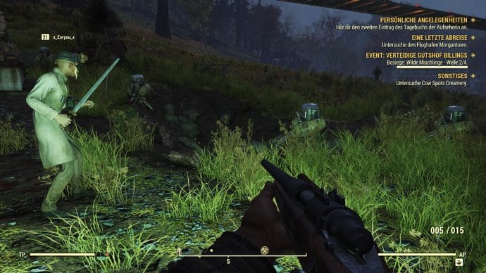 Doch trotz der vielen Abwechslung in den Regionen rund um die Spielwelt Appalachia, so fühlt sich die Kulisse einfach nur leer an. Wir vermissen NPCs die uns mehr über die Hintergründe der Geschichte erzählen können oder ein Dorf neu aufbauen. Dadurch, dass die Server auf 24 Spieler begrenzt sind, fühlt man sich einsam und allein in einer riesigen Welt. Nichtsdestotrotz lädt diese uns an vielen Ecken zum ausgiebigen Entdecken und Erkunden ein. Wir können zahlreiche Geschichten erleben, allerdings nur wenn man sich die Zeit nimmt, um diverse Briefe und Notizen der Hinterbliebenen zu lesen.