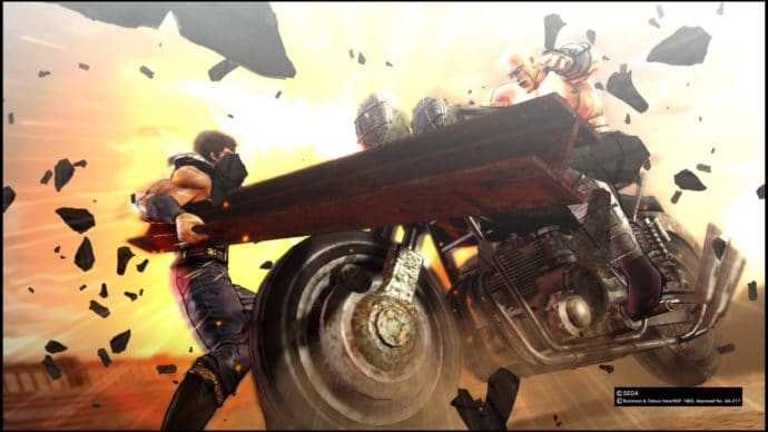 Mit Fist of the North Star hat sich Ryu ga Gotoku Studio erstmals eine externe Lizenz geschnappt. Diese fußt maßgeblich auf den gleichnamigen Manga, welcher zwischen 1983 und 1988 erschienen ist und bereits diverse Umsetzungen in Form von Anime, Videospielen und einen Realfilm erfahren hat. Als westlicher Konsument dürfte man sich auf den ersten Blick vor allem an Mad Max erinnert fühlen und tatsächlich gibt es viele Anleihen (ein vertrocknetes Ödland, auf absurd aufgemotzten Fahrzeugen fahrende Banden etc.) an die Filme mit Mel Gibson in der Hauptrolle. Unterfüttert wird das Ganze mit einer gehörigen Prise 80er Jahre Manga Wahnsinn, Martial Arts und B-Movie Charme. Eine Mischung, die verdammt gut zu den Entwicklern von Yakuza passt.