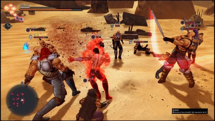 Der komplette Wahnsinn entlädt sich aber erst, sobald man Ken selbst durch die zerstörte Spielwelt steuert. Die Handschrift der Entwickler ist schon ab der ersten Minute deutlich zu erkennen, komplette Spielsysteme und Mechaniken aus Yakuza finden sich in Fist of the North Star: Lost Paradise wieder. Das Grundgerüst bilden auch hier die Kämpfe, wobei der Kampfstil von Kenshiro etwas flotter, als der von Kazuma Kiryu und Co. ist. Mit schnellen Aktionen werden die Widersacher malträtiert, wirklich Schaden machen aber erst die verschiedenen Hokuto Shinken Techniken, mit denen spezielle Druckpunkte im Körper angegriffen werden. Das Ende vom Lied: Kens Gegner explodieren und mehr, als ein paar Fetzen Fleisch und jede Menge Blut, bleibt von ihnen nicht übrig.