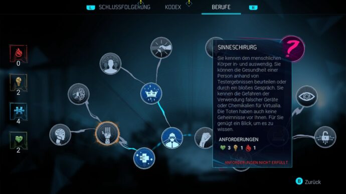 Schon früh lassen sich die Features von Rollenspielen erkennen. Denn während wir die Fälle lösen, schalten wir bei unserem Charakter nach und nach neue Fähigkeiten über einen Fähigkeitsbaum frei. Selbstverständlich greifen weitere Elemente, die zu dem Genre gehören. Je nachdem, wie wir in den Dialogen antworten und was wir in diesem Spiel machen, werden Auswirkungen auf unseren Charakter sowie Umwelt deutlich.
