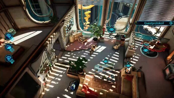 Doch kommen wir nun zur Umsetzung des Rollenspiels auf der Nintendo Switch. Klar sollte sein, dass wir nicht die gleiche technische Qualität wie auf dem PC oder beispielsweise einer PlayStation 5 erwarten dürfen. Hier und da fällt fehlendes Anti Aliasing schon auf. Das Kantenflimmern ist genauso sichtbar wie leider auch ein paar wenige Framedrops, die sich spürbar auf den Spielfluss auswirken. Dafür macht Gamedec rein optisch auf der Nintendo Switch einen soliden Eindruck. Schöne Spiegelungen und Lichteffekte fallen deutlich auf und heben die Optik hervor. An dieser Stelle empfehlen wir noch unser Video-Review, welches weitere Eindrücke weitaus besser vermitteln kann, als das geschriebene Wort.
