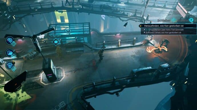 Und je nachdem, mit welchen Personen wir uns unterhalten und wie wir antworten, ergeben sich unterschiedliche Möglichkeiten, die Fälle zu lösen. Im Menü können wir unseren Ermittlungsfortschritt sehen. War es ein Unfall? Ist es ein Attentat gewesen? War es Person A, B oder doch Person C? Je nachdem, wie wir uns entscheiden, hat das Auswirkung auf den weiteren Verlauf unserer Ermittlung. Und das ist eine der prägnanten Stärken von Gamedec.