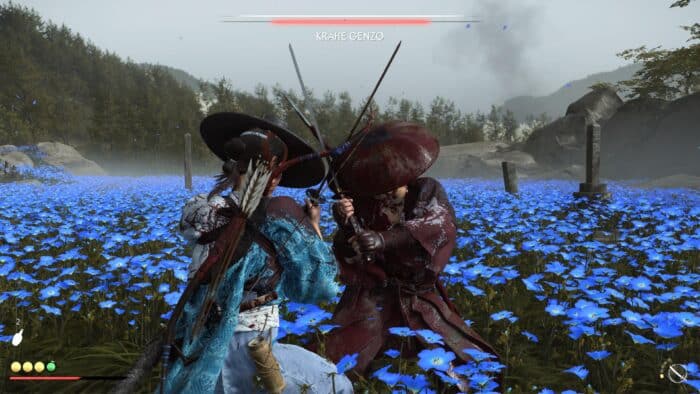 Die vier Grundhaltungen zum Führen des Schwertes aus dem Vorgänger wurde durch das neue Waffen-Kontersystem ersetzt. Man kann sich das in etwa wie das Papier-Steine-Schere-Prinzip vorstellen. Das Katana ist ein guter Allrounder, mit dem Kusarigama durchbricht man Schilde, mit dem Doppel-Katana ist man mächtig gegen Stangenwaffen usw. Das System macht richtig Spaß, die Kämpfe ebenso. Und auf dem hohen Schwierigkeitsgrad habe ich die Auseinandersetzungen auch als angenehm knackig empfunden. Hier kommt es auf gut getimte Konter und Paraden an. Auch sollte man sich gerade in den ersten Spielstunden ganz genau überlegen, ob man sich in eine gegnerische Gruppe stürzt. Ist man umzingelt und kämpft mit einem Gegner, warten dessen Kameraden nämlich in der Regel nicht, bis man sich ihnen widmet. Da wird auch von der Seite her angegriffen, ob mit Hieb- und Stich oder auch Schusswaffen bzw. Pfeil und Bogen. Die Dynamik in den Kämpfen ist toll und erfüllt genau das, was das Spiel sein will: die ultimative Samurai-Fantasie.