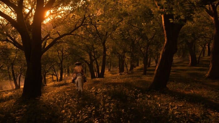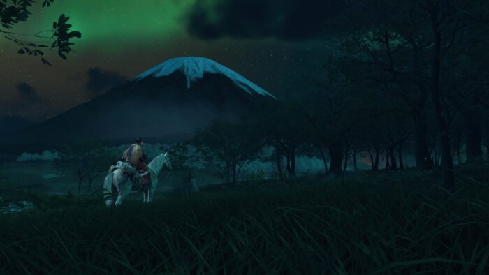 Kurzum: die Story hat mich ziemlich ernüchtert und bleibt hinter den Möglichkeiten zurück. Für alle anderen Aspekte hingegen könnte ich die Fanfare zücken und ein Loblied anstimmen. Denn spielerisch und technisch ist Ghost of Yōtei stimmig und aktuell eines der Besten seiner Art. Alleine die offene Welt ist zu niederknien. Sucker Punch inszenieren das nördliche Japan in einer visuellen Pracht, wie sie geradezu unerhört ist. In butterweichen 60 Frames reitet man mit dem Pferd durch herrlich grüne Wiesen, sucht mit dem Katana im Anschlag in finsteren Wäldern nach verbrecherischen Ronin, stapft durch dichte Schneestürme und spürt regelrecht die Kälte durch den Bildschirm kriechen, erfreut sich an den herrlich goldroten Blättern der herbstlichen Bäume und bewundert die blühende Sakura in ihrer pinken Pracht. Mit den Jahreszeiten nimmt man es nicht so genau und ballert stattdessen einmal mehr sämtliche visuellen Japan-Klischees auf den Bildschirm. Aber das habe ich schon beim Vorgänger so sehr geliebt und ich liebe es auch hier wieder.