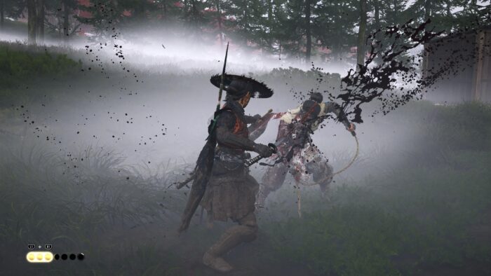 Bei aller Kritik um verpasste Gelegenheiten um real-geschichtliche Anknüpfungspunkte darf man eines nämlich nicht vergessen: Ghost of Yōtei ist in erster Linie ein Unterhaltungsprodukt. Es wäre schön, wenn dieses etwas mehr zu sagen hätte, ja. Aber als Entertainment funktioniert das Spiel hervorragend. Auch, da man erneut erkennt, wie sehr die Macherinnen und Macher auf Samurai-Fiktion abfahren. Der aus dem Vorgänger Kurosawa-Modus, welcher das Spiel in schwarz-weiß Optik einhüllt, ist wieder an Bord. Neu ist der Takashi Miike Modus, der mit mehr Blut und Schlamm sowie einen kleineren Bildausschnitt in den Kämpfen operiert. Der Modus lehnt sich vor allem an Miike´s 13 Assassins an und war die meiste Zeit über bei mir aktiviert. Und es gibt noch einen dritten Modus, welcher in Zusammenarbeit mit Shinichiro Watanabe (Samurai Champloo) entstanden ist und den Soundtrack kurzerhand mit Lo-Fi-Beats austauscht. Diesen habe ich aktuell im Endgame an und finde ihn albern wie spaßig zugleich.