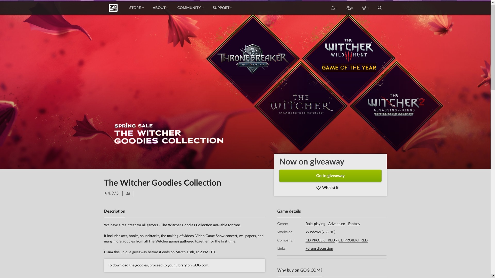 Als besonderes Geschenk erhaltet ihr bei GOG außerdem die The Witcher Goodies Collection kostenlos. Das Paket enthält neben dem The Witcher 3 Konzert in diversen Auflösungen, einige Wallpaper, Making Off Videos und Artbooks. Die Aktion gilt aber nur noch wenige Stunden, schaut also besser schnell auf gog.com vorbei.
