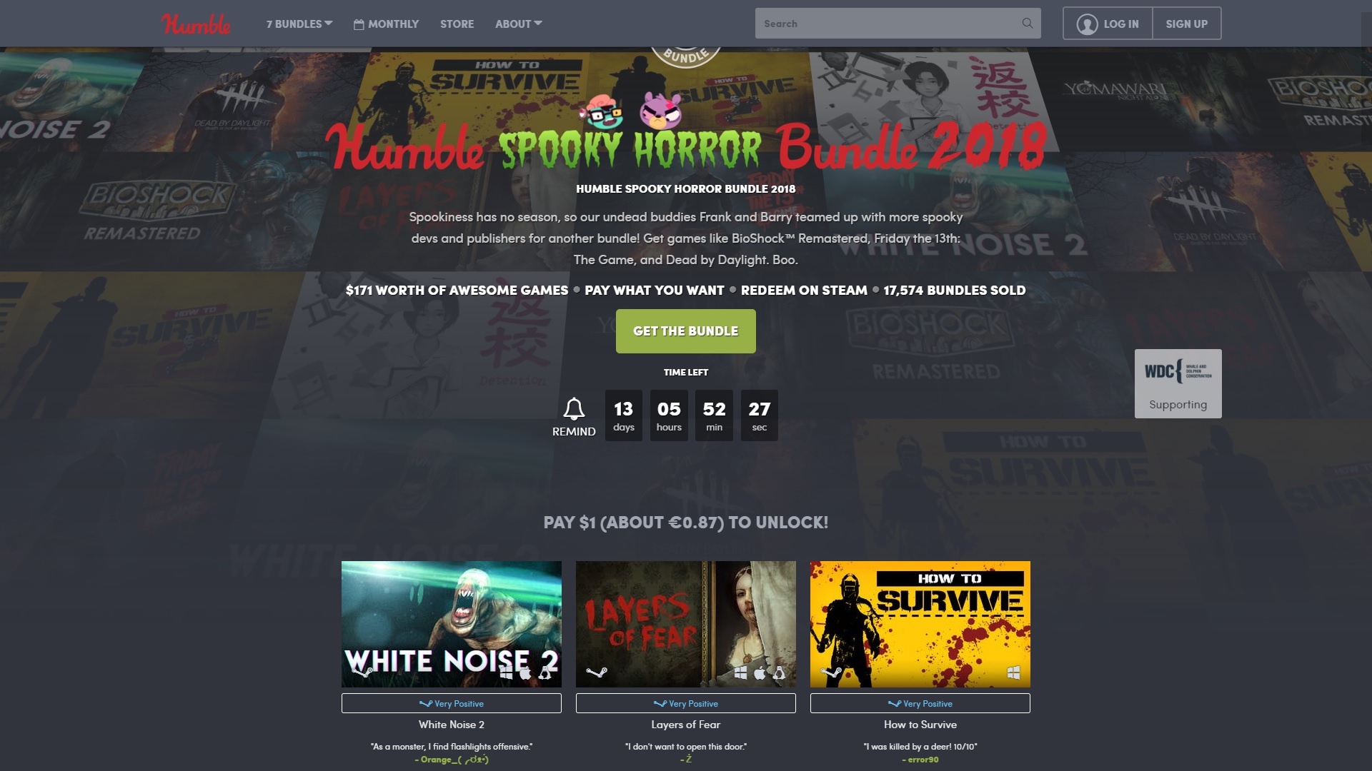 Aktuell vergeht wohl keine Woche ohne ein neues Humble Bundle. So wurde gestern Abend überraschend das brandneue Humble Spooky Horror Bundle vorgestellt. Dieses enthält, wie der Name schon vermuten lässt, ein großes Gruselpaket. Top Games wie Layers of Fear, BioShock Remastered oder Dead by Daylilght sorgen auch tagsüber für eine Menge Gänsehaut. Mit einem Kauf unterstützt ihr außerdem das Projekt charity:water für mehr sauberes Trinkwasser auf dieser Welt. Wie viel der bezahlten Summe an Entwickler, Charity Projekt bzw. Humble Bundle selbst geht, kann frei festgelegt werden. Das Spooky Horror Bundle ist im Humble Store (hier) noch bis einschließlich 4. September erhältlich und enthält folgende Titel: