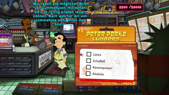 Herzstück des Spiels ist natürlich der frivole Humor, der sich eher an aufgeklärte Erwachsene richtet, weswegen die Altersfreigabe ab 16 Jahre, trotz des charmanten Comicstils, auch absolut Sinn ergibt. Ob man nun versucht an einem widerspenstigen Zuhälter vorbeizukommen, um zu dessen „Angestellten“ einzu… – äähm, ich meine vorzudringen, eine aufblasbare Sexpuppe „bearbeitet“ oder in einer waghalsigen Aktion ein Potenzmittel stiehlt, um mit dessen Hilfe eine Angebetete „aufzuheizen“ – der Humor in Leisure Suit Larry geht definitiv unter die Gürtellinie.;)