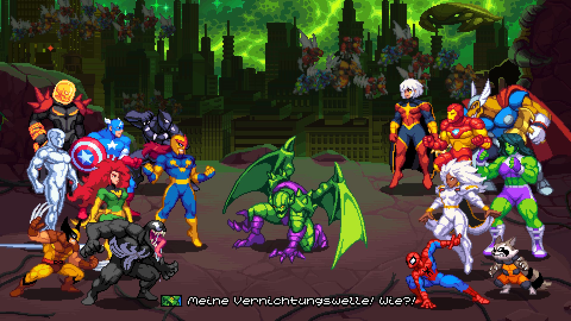 Ich muss ehrlich sein, Marvel Cosmic Invasion ist komplett an mir in der Vorberichterstattung vorbeigegangen. Eigentlich ist das unvorstellbar, denn ich liebe die Marvel Comics. Doch mit dem Release kam zugleich das Interesse zum Spiel, welches sich an Beat’em’up Games aus den 16 Bit Zeiten orientierte. Und warum auch nicht, denn Power Rangers: Rita’s Rewind und Teenage Mutant Ninja Turtles: Shredder’s Revenge hatten mit diesem 16 Bit-Pixel-Look bereits Erfolge feiern können.