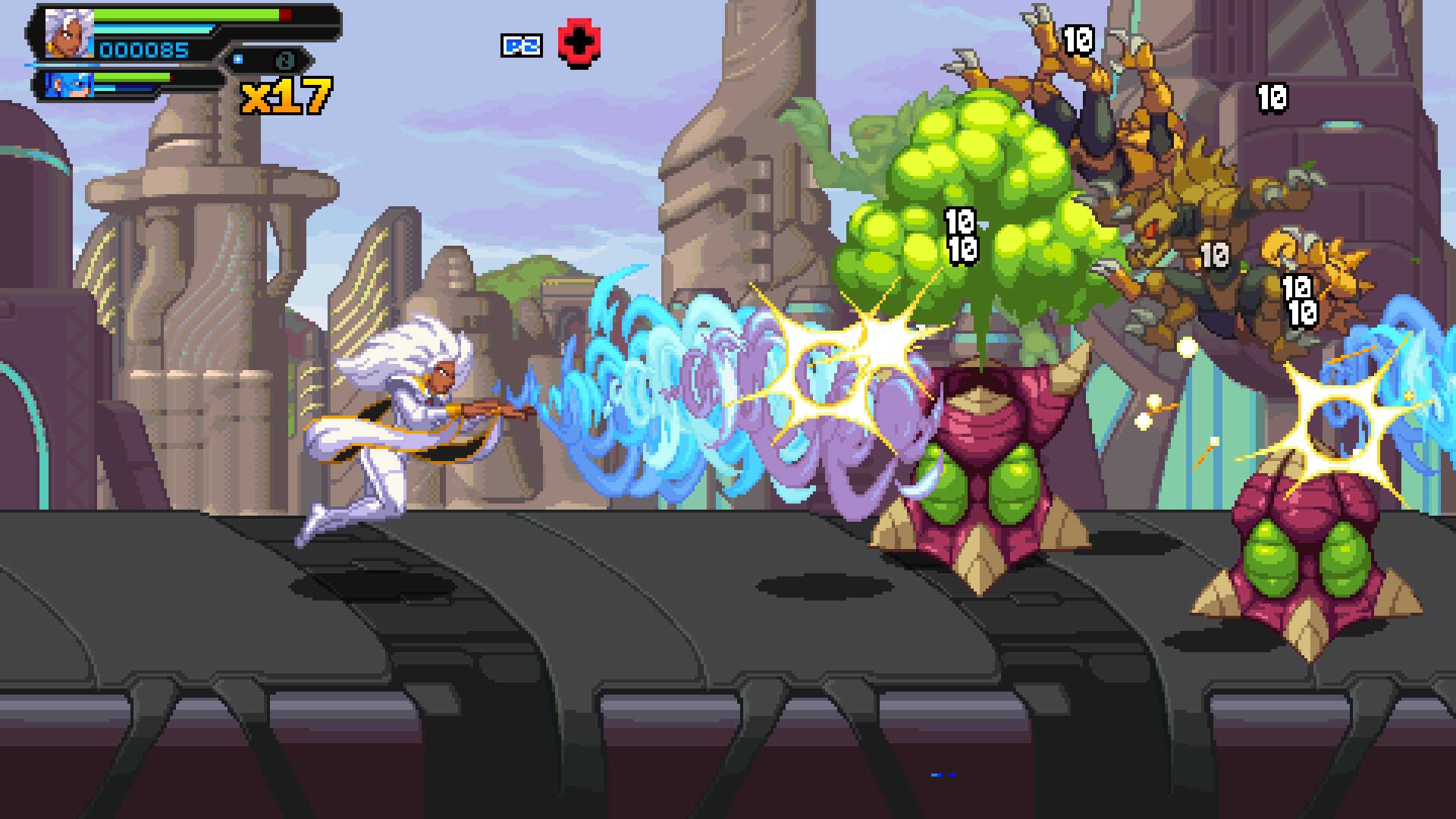 Wenn ihr die Level durchreist habt und keinen Stein mehr auf dem anderen steht, werden auch neue Gefährten eure Truppe erweitert haben. Am Ende sind es 15 Helden, bzw. vereinzelt auch ein paar Schurken dazwischen, die alle dasselbe Ziel verfolgen. Mit so einem starken Kader und einer Kombo an immer 2 Superhelden bietet sich der Multiplayer regelrecht an. Marvel Cosmic Invasion zeigt hier seine Stärke, aber auch gleichzeitig seine Schwäche. Denn dank eines 4-Player-Koop prügelt es sich umso leichter durch die Areale. Doch wenn dann noch die Begleiter für ein paar Moves gerufen werden, wird es schnell überladen auf dem Bildschirm.