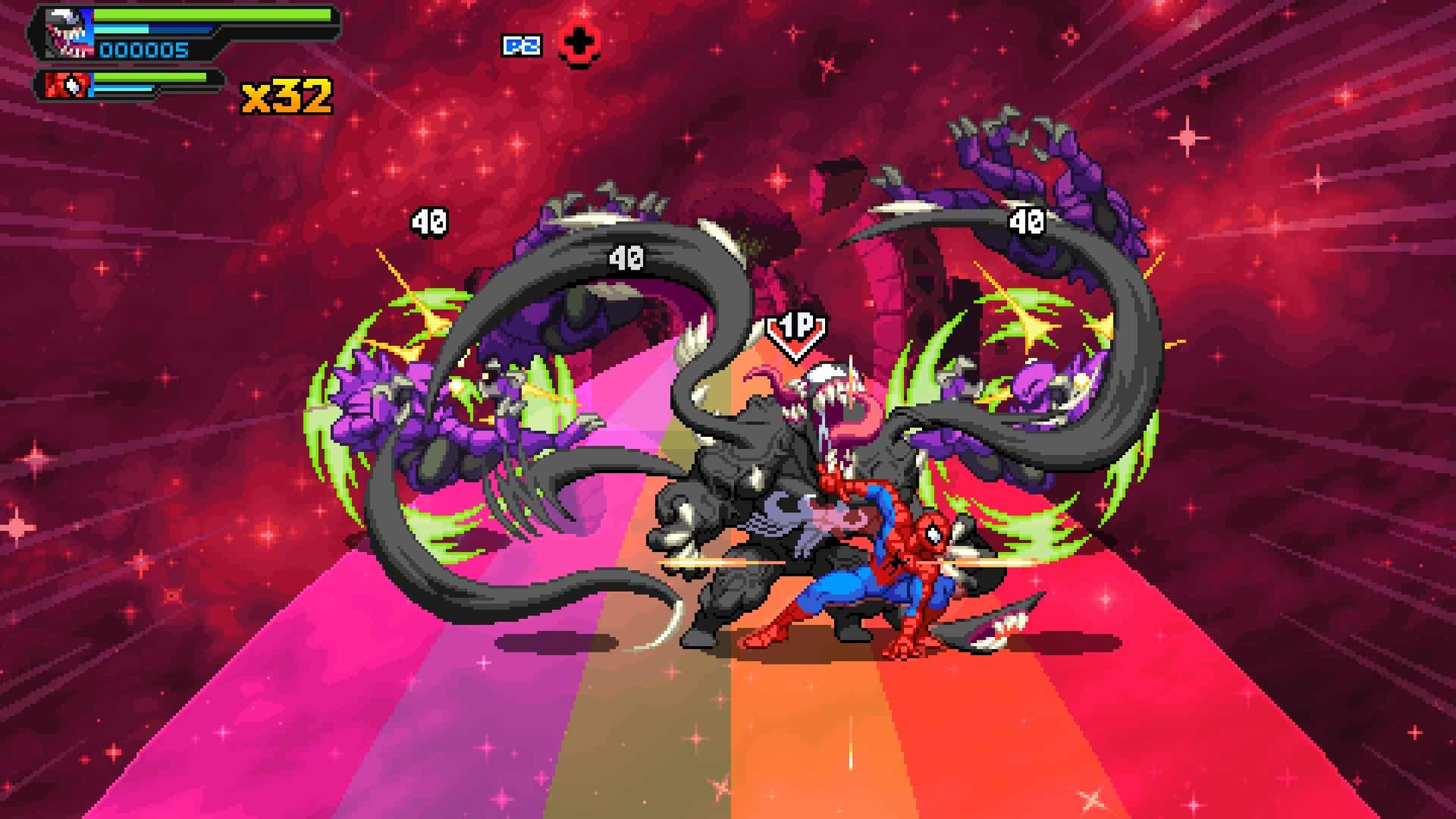 Weniger überraschend ist es, dass am Ende der meisten Level ein Endboss auf euch wartet, der nicht immer eine sichere Nummer ist. Doch selbst wenn ihr scheitern solltet, gibt es für den Fortschritt Punkte, die ggfs. zu einem Level-Up führen. Mit jedem Charakteraufstieg wird euer Superheld stärker und kann sich leichter durch die Reihen von Gegnern schlagen. Habt ihr jedoch den Arcade-Modus gewählt, werden die RPG-Elemente verworfen und der Schwierigkeitsgrad noch weiter angezogen. Dies wird Profis der alten Schule besonders gut gefallen.