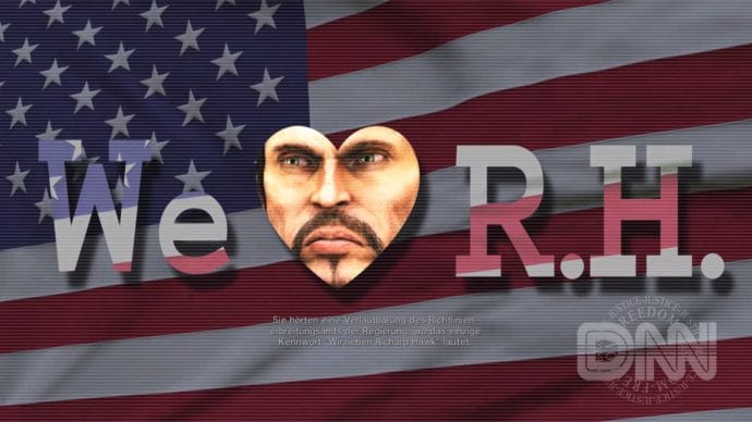 Wie eingangs bereits angerissen, schlüpft man in die Rolle von Michael Wilson, seines Zeichens amtierender Präsident der USA. Dieser muss nach einem Putschversuch seines Vizes Richard Hawk nicht nur aus dem Weißen Haus fliehen, sondern auch mit ansehen, wie sein ehemaliger Kollege das amerikanische Volk versklavt und ein totalitäres Regime mithilfe der heimischen Streitkräfte errichtet. Statt ins Exil zu gehen, nimmt Wilson den Kampf aber selbst auf und tritt in einem bis an die Zähne bewaffneten Mech gegen Hawk und seine Unterstützer an. Erzählt wird die aberwitzige Story vor allem in Briefings zwischen Wilson und seiner Assistentin Jody. Hin und wieder gibt es außerdem noch Einspieler vom fiktiven Nachrichtensender DNN, in welchem im Prinzip genau das stattfindet, was heute auf Fox News und Co. abgeht. Überhaupt ist Metal Wolf Chaos XD stellenweise erschreckend nah an der aktuellen Zeit. Dabei haben sich Director Keiichiro Ogawa und seine Kollegen alle Mühe gegeben wirklich jedes Klischee über den US-Patriotismus, böse Politiker und Falschmeldungen verbreitende Nachrichten in das Spiel zu packen, was wiederum so dermaßen überdreht ist, dass man den Entwicklern hier entweder ein geniales Gespür für sich anbahnende Entwicklungen oder eine ausgefuchste Fantasie attestieren muss.