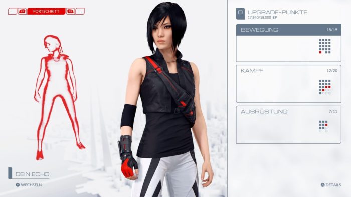 Weiters neu ist das Level-System. Für erfolgreich beendete Aufträge und Nebenaufgaben bekommt ihr nun Erfahrungspunkte, mit denen ihr Faiths Fähigkeiten verbessern könnt. Das Angebot erstreckt sich von weiteren Parkour-Moves, über neue Angriffe, bis hin zu erweiterter Ausdauer. Viele dieser Upgrades verhelfen euch zu noch geschmeidigerer Fortbewegung. Im späteren Spielverlauf erhaltet ihr sogar einen Fanghaken ala The Legend of Zelda, der das Vorankommen ungemein erleichtert. So könnt ihr euch an vorgegebenen Stellen über große Abgründe schwingen oder hohe Gebäude hochziehen. Der Haken eröffnet völlig neue Möglichkeiten und schnellere Routen, ein gelungenes Feature wie wir finden.
