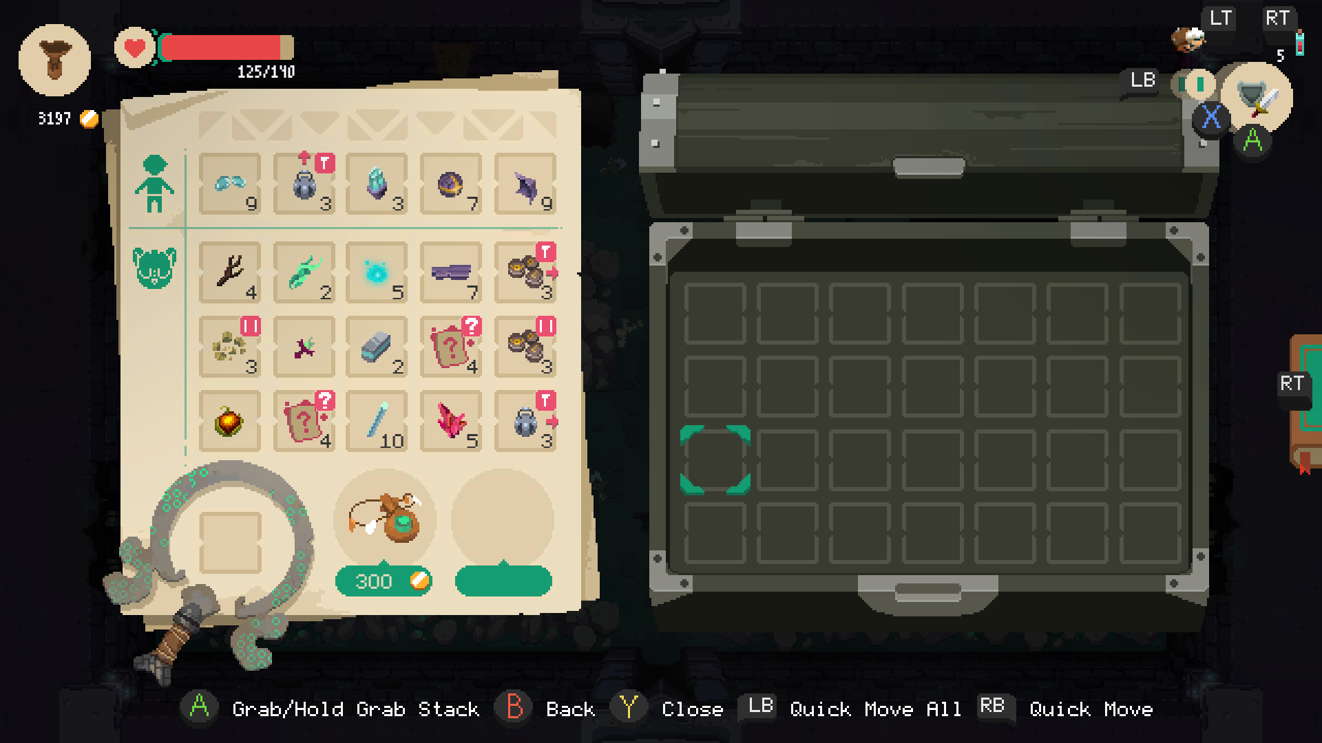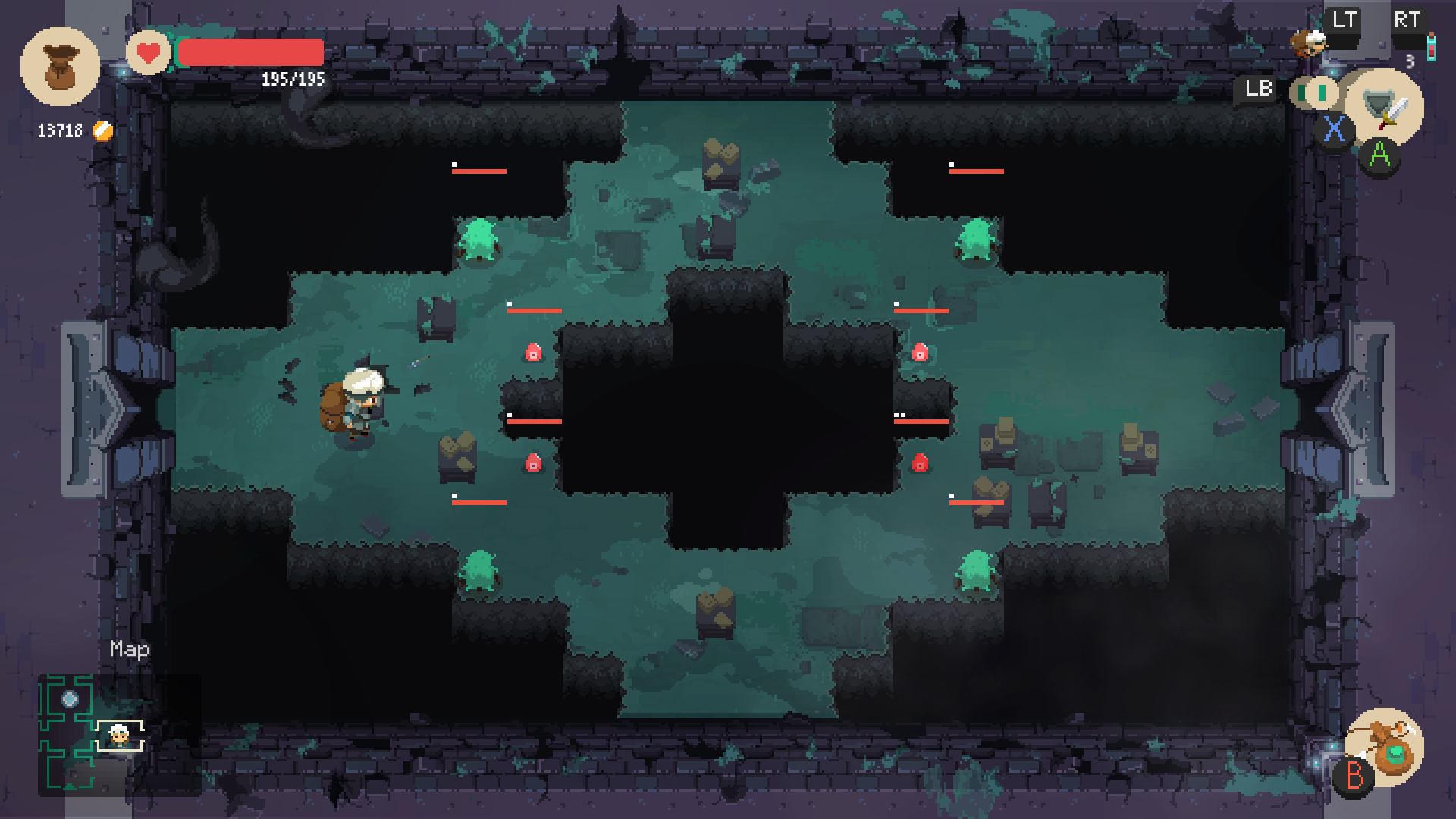 Der erste Tag im Leben eines Item Shop Besitzers geht zu Ende. Neuer Tag, neue Chance sagt man und so geht es wieder in den Golem Dungeon. Dieses Mal hat Will mehr Glück, er läuft, schlägt und hechtet in guter alter Retro Action Adventure Manier durch die erste von gesamt drei Etagen. Wieder zu Hause angekommen, stellt sich die Frage, ob man die gesammelten Rohstoffe schnellstmöglich an den Mann bringt oder doch den lokalen Schmied aufsucht. Dieser zimmert aus den entsprechenden Materialen gegen einen mehr oder weniger hohen Aufpreis neue Ausrüstung. Eine ausgewogene Kombination aus Schwert und Schild, ein Großschwert, Kampfhandschuhe oder doch einen Jagdbogen. Die Auswahl an verfügbaren Schlageisen kann sich durchaus sehen lassen. Leider kann man aber nicht selbst craften, sondern muss dazu einen Schmied, Alchemisten oder dergleichen aufsuchen.