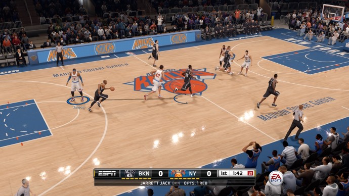 Ich bin aufs große Ganze wirklich begeistert von NBA Live 16, denn hier haben wir es mit einem sehr stimmigen und vor allem sehr energetischen und stimmungsvollem Sport Game am technischen Puls der Zeit zu tun. Die NBA lebt, vielmehr als unser König Fußball, von ihrer eigenen Dramatik. Die angefeuerte Stimmung in Basketball Arenen wie dem New Yorker Madison Square Garden ist einzigartig, voller Feuer, und anstatt unter orchestralen Meisterschafts-Hymnen und in Zweierreihen auf das Spielfeld zu kommen, laufen unsere Akteure hier lässig und mit entschlossenen, angespannten Gesichtern unter Pyro Fontänen und pumpenden Black Music und Hip Hop Beats in der Arena auf…was die Menschenmengen, die diese Spektakel live verfolgen endgültig zur Extase bringt. EA Sports ist es bemerkenswert gut gelungen, eben dieses sportliche „Drama“ zu transportieren. Wenn man nach den ersten Testläufen inklusive einigem „Trial and Error“ so langsam mit dem Style des Spiels und der Steuerung warm wird, ertappt man sich auf einmal dabei, auf dem Sofa die Drehungen und Körpertäuschungen der eigenen Spieler mitzumachen. Und spätestens, wenn dir kurz vor dem Ende des 4. Viertels nach einem Solo Lauf mit deinem eigenen Spieler ein fetter Slam-Dunk gelingt und der authentische und lebensechte US Sport TV Moderator begeistert deinen Namen schreit, weil du den Big Point gesetzt hast… dann merkst du, was NBA Live 16 für ein authentisches und Adrenalin geladenes Spiel ist. Das hier ist viel weniger „Simulation“ als andere Sports Games, hier sind zwar die grafischen, akustischen und technischen Eckpfeiler gegeben, bieten aber vielmehr nur die Plattform für ein richtig heißes Spieleerlebnis, dass von seinen Emotionen lebt.