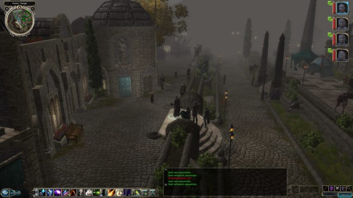 Allzu viel habe ich an dieser Stelle nicht zu erzählen, da sich gameplaytechnisch logischerweise nicht wirklich etwas getan hat. Wer das Hauptspiel Neverwinter Nights 2 gespielt hat, weiß was ihn hier erwartet. Und da MoW noch vor den Add-ons fertiggestellt wurde, gibt es hier auch kein Material aus Mask of the Betrayer oder Storm of Zehir zu finden. Dennoch gibt es einige Dinge zu besprechen. MoW findet ausschließlich in der Namen-gebenden Stadt Westgate statt, was bedeutet, dass sich sowohl Spielumfang als auch Abwechslungsreichtum des Szenarios in Grenzen halten. Die Spieldauer beträgt ca. 15-20 Stunden. Westgate setzt sich aus insgesamt drei offiziellen Bezirken, einem inoffiziellen Kanalisations-Bezirk, sowie diversen Häusern, Gebäuden und einigen Dungeons zusammen. Mithilfe einer Stadtkarte erhält man Zugriff auf einige Schnellreisepunkte, welche die Masse der virtuellen Latscherei etwas geringer halten. Leider öffnet sich besagte Stadtkarte nur dann, wenn man zum Ausgang des jeweiligen Stadtviertels stiefelt.
