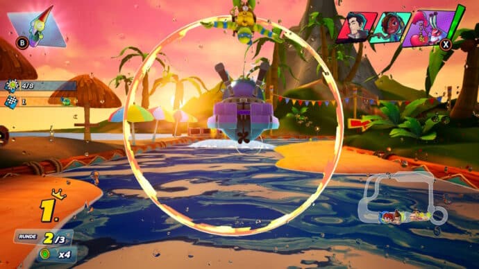 Das Itemsystem wirkt bedauerlicherweise nicht ganz ausbalanciert. In führender Position bekomme ich ständig offensive Items, um Gegner vor mir zielsicher abzuwerfen. Problem ist nur, als erster hat man für gewöhnlich keine Gegner vor sich. In einem Mario Kart bekommt man als führender Fahrer auch nicht ständig einen roten Panzer nach dem anderen spendiert, sondern eher Bananenschalten oder Münzen. Hier rotieren mir die Items zu wenig bzw. eher sinnfrei.