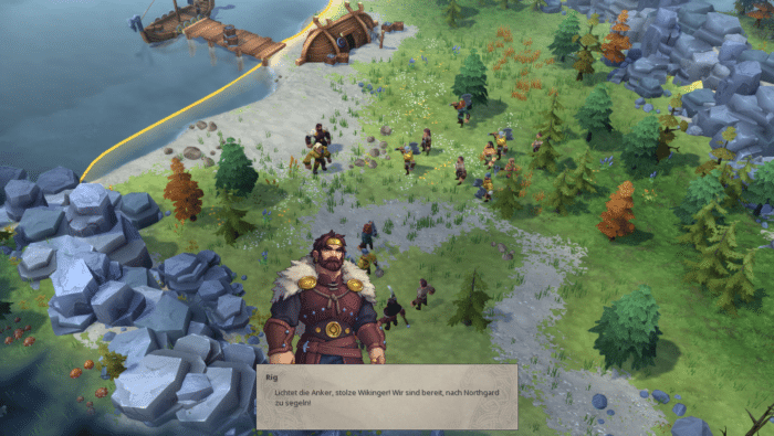 Ich verlange von derart Spielen kleine großen Grafikwunder und dieses bleiben bei Northgard auch aus. Wer die Anschaffung wagt, bekommt eine solide, aber liebevolle Optik geboten, die nicht an Animationen spart. Zwar sind die Bewegungsabläufe immer dieselben, eine lebendige Welt suggeriert die Grafik dennoch. Wer nun aber denkt, das Szenario mit nordischen Einflüssen versucht sich realitätsnah, der irrt. Stattdessen darf sich der Spieler auf einen recht eigenen Comic-Look freuen, der in der Kampagne sogar noch mit speziellen Charakteren ausstaffiert ist. So gibt es den Mannen Rig und einige seiner Gefolgsleute als Bild präsentiert.