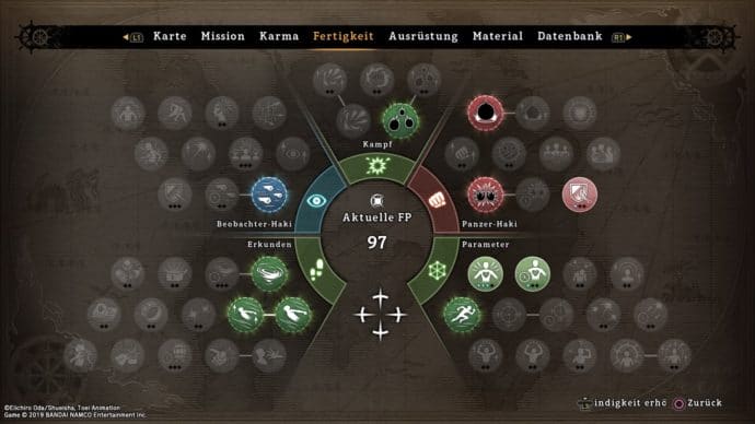 One Piece World Seeker ist im Kern ein Action-Adventure in einer offenen Spielwelt. Mit Protagonist Ruffy können wir uns frei bewegen und, sobald wir auf feindliche Marinesoldaten stoßen, prügeln. Die Kämpfe machen durchaus Spaß. Zu Anfang stehen uns eine Hand voll Standardangriffe zur Verfügung, die wir bei mehrmaligem Tastendrücken zu simplen Kombos verbinden können. Außerdem kann zwischen zwei Stilen gewechselt werden, dem schnellen Beobachter-Haki und dem Verteidigungen durchbrechenden, aber langsameren Panzer-Haki. In beiden Stilen steht neben den Standardangriffen auch ein Fernangriff zur Verfügung, bei dem wir ins Visier genommene Gegner mit Ruffys verlängerten Gummiarmen regelrecht abschießen. Wir können uns aber auch an Gegner heranschleichen und sie leise per Schleichangriff ausschalten. Es steht also schon zu Beginn eine relativ abwechslungsreiche Palette verschiedener Kampftechniken zur Verfügung. Diese lässt sich aber auch noch erweitern, denn das Spiel beinhaltet die Möglichkeit Fähigkeitenpunkte in einem klassischen RPG-Fähigkeitenbaum gegen neue Techniken einzutauschen. Zum einen lassen sich so neue Kampftechniken erwerben, wie ein aufgeladener, besonders starker Schlag oder die Gum-Gum-Gatling, bei der Ruffy in schneller Abfolge Schläge verteilt. Zum anderen können aber auch Fähigkeiten hinzugefügt werden, die etwa beim Vorankommen in der Spielwelt helfen. Anfangs kann Ruffy nur zu Fuß von A nach B latschen, später fliegt er kurze Strecken wie ein Helikopter oder schwingt sich mit seinen Gummiarmen von Baum zu Baum.