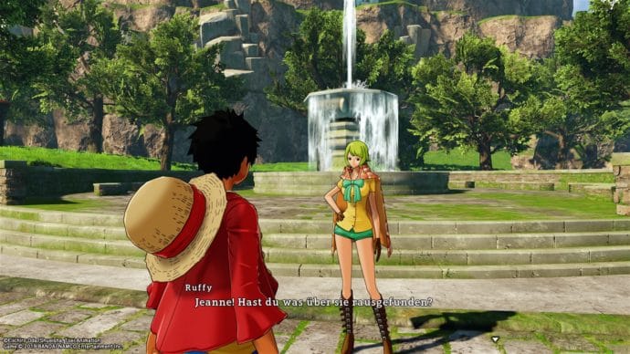Die Optik von One Piece World Seeker ist ein Punkt, über den sich sicherlich streiten lässt. Speziell ist der Mix aus Anime-Figuren und einer eher realistischen Umgebung nämlich allemal. Ansonsten bewegt sich die Grafik auf einem Mittelmaß. Die Charaktere wirken in ihrer Mimik recht hölzern, die Konturen, sind aber ansonsten im Stil der Vorlage treu. Die Umgebungen sehen stellenweise echt schick aus, zum Beispiel Wassereffekte oder Felsen, doch dann wiederum gibt es Momente in denen Grasflächen im Hintergrunde nicht vernünftig zu laden scheinen und nur einen flächig-grünen, unnatürlichen Teppich abbilden. Der Teufel liegt darüber hinaus im Detail. Es kann uns schon gut und gerne mal passieren, dass wir uns selbst in einer Glastür spiegeln, aber uns unser eigenes Spiegelbild den Rücken zukehrt. Oder ab und zu dreht sich ein NPC nicht um, wenn wir ihn von hinten ansprechen und mit ihm reden. All dies sind kleinere Macken, die das Spiel natürlich nicht unspielbar machen. Dennoch wünscht man sich ja irgendwie immer doch etwas mehr Liebe zum Detail.