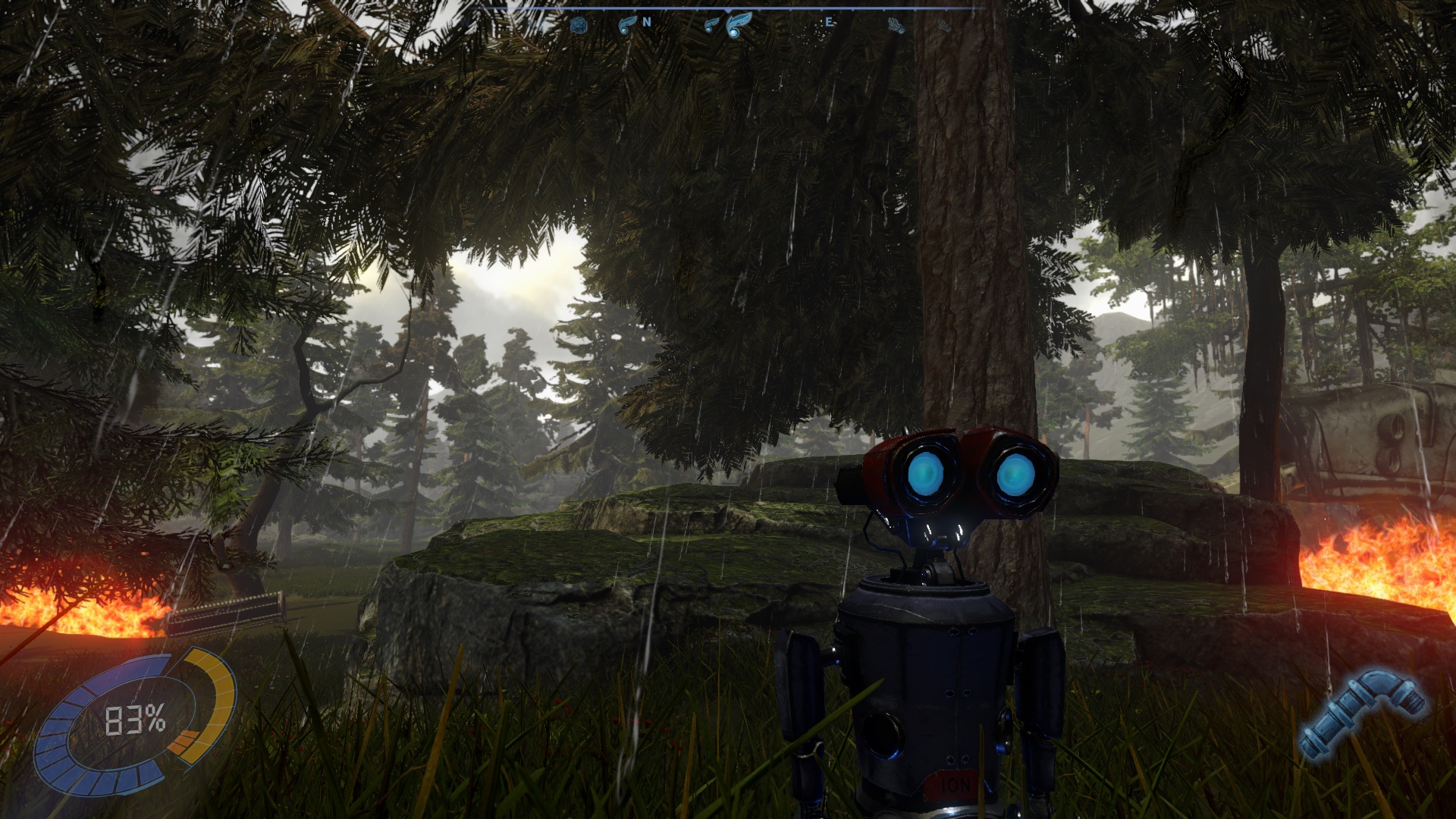 Hat man die ersten Eindrücke nun verdaut, bleibt immer noch ein Problem. ION und die künstliche Intelligenz EU_18TR289x65, kurz TR2, sitzen mit einem defekten Raumschiff auf einem unbekannten Planeten fest. Bis auf einige Pflanzen, Pilze und Steine scheint es hier nicht viel zu geben. Glücklicherweise verfügt ION über die Fähigkeit, aus einfachen Ressourcen verwertbare Materialen und Gegenstände herzustellen. Aus einfachen Keimlingen und Pilzen lässt sich etwa Treibstoff oder aus Erz und Wurzeln ein Reparaturkit herstellen. Seine lange Reise führt den kleinen Erkundungsroboter durch den tiefsten Dschungel, einsame Wüstendünen und eisige Berghänge. Damit Ihr auf dem Weg durch unbekanntes Terrain nicht vereinsamt, plappert die Schiffs-KI über das Comlink munter vor sich hin. Zum Glück kreuzt Ihr im späteren Spielverlauf außerdem den Weg von ANI, einem Wartungsdroiden, der auch hier festsitzt. Ist das vielleicht der Beginn einer guten Freundschaft?