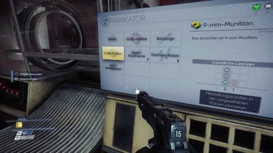 Prey verdammt euch förmlich dazu zum wandelnden grünen Punkt zu werden und alles einzusammeln, was Schränke, Mülleimer und verborgene Ecken hergeben. Egal ob zusammengeknülltes Papier, braune Bananenschalen, durchgeschmorte Kabel – sammelt alles, was ihr finden könnt, und bringt es zu einem der großen Recycler-Automaten. Werden diese mit dem vermeintlichen Müll gefüttert, hagelt es ebenfalls genannte Ressourcenbälle. Diese wiederum können an einem Fabrikator-Automat (eine noch coolere Variante eines 3D-Druckers) in Munition, Gesundheitsgegenstände, Upgrade-Kits für Waffen usw. verwandelt werden. Die entsprechenden Blaupausen solltet ihr vorher aber gefunden haben, ansonsten steht die Maschine still.
