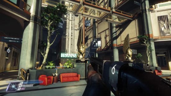 Langsam bewege ich mich durch die spärlich beleuchteten Gänge der Raumstation Talos I. Vorsichtiges Vorgehen – das haben mich die bisherigen Spielstunden bereits gelehrt – ist wichtig, um nicht in die tückischen Fallen meiner außerirdischen Widersacher zu geraten. Ich stehe in einem großen Raum, der zu anderen, lebendigeren Zeiten offenbar ein beliebter Treffpunkt war. Ich kann mir bildlich vorstellen, wie sich das Personal nach der Arbeit hier getroffen hat um eine Runde Billard zu spielen, wie es sich Einzelgänger mit einem Schmöker auf einen der ausladenden Ledersessel gemütlich gemacht haben und wie die Kollegen über Gott und die Welt geredet, über ihre Arbeit geflucht und über ihre Vorgesetzten gelästert haben.