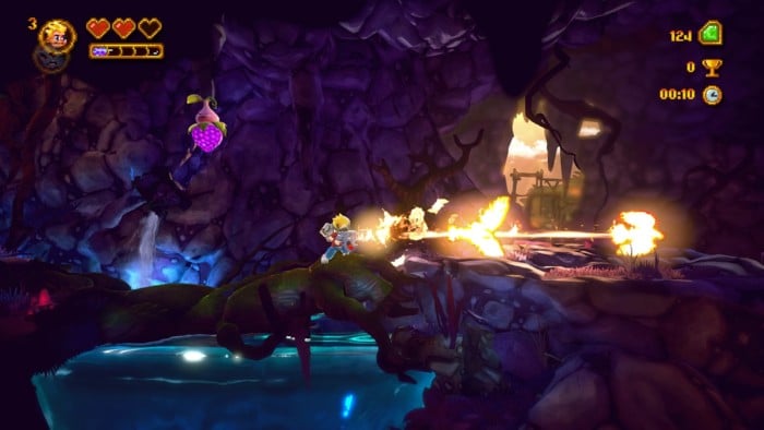 Der Platformer, der sich an Klassikern wie Commander Keen orientiert, leidet nach wie vor an Bugs und Glitches, wie zum Beispiel Gegner, die uns zwar sehen, aber uns nicht angreifen oder zumindest auf unsere Präsenz reagieren. Dies war bereits ein Problem des ursprünglichen PC-Release und trumpft daher an der Stelle recht ungünstig auf. Ebenso gibt es Bildfehler, die uns die Sicht behindern und dadurch ggf. für Nachteile im Spielgeschehen sorgen. Da darf man sich zumindest berechtigt die Frage stellen „Was haben die Entwickler in den vergangenen 17 Monaten so getrieben? Wofür eigentlich die ursprüngliche Finanzierung, wenn 7 Wochen später das fertige Spiel bereits über Steam erhältlich war?“ Auch beim Gameplay gibt es hier und da ein paar Schwächen. So kommt es schon einmal vor, dass einige Animationen nicht rund und eher abgehackt daherkommen, was schon frustrierend sein kann.