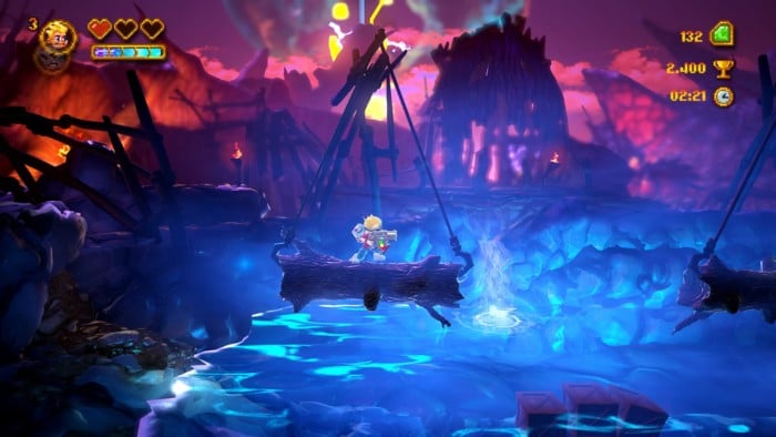 Als Oberwelt dient hier eine Karte, über die wir von Level zu Level gelangen können. Um ein Level erfolgreich abschließen zu können, benötigen wir sogenannte „Chunks“. Hier sind pro Level jeweils vier Stück versteckt, die es zu finden gilt. Haben wir vier Stück gesammelt, öffnet sich am Ende die Tür.