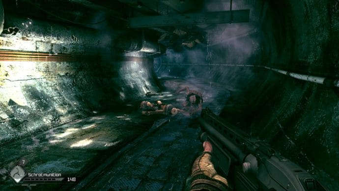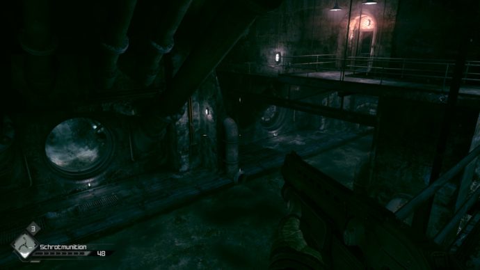 Dummerweise entpuppen sich die Sewer-Level auf Dauer als recht fade Angelegenheit. Wie gesagt sind sie sehr klein und zu 99 % mit regulären Standard-Mutanten bevölkert, welche man mit der Schrotflinte mühelos in Schach halten kann. Ziel ist es ein Knochentotem der Mutanten zu plündern. Hat man das geschafft, wird eine Nebenquest auf der Anschlagtafel im jeweiligen Stadt-Hub freigeschaltet. Diese Nebenmission schickt uns in den selben Kanalisationsabschnitt zurück, mit der Aufgabe sämtliche Mutanten auszulöschen, die dort herumlungern. Danach bekommt man einen kleinen Geldbetrag als Belohnung und … Das wars auch schon. Eine Story wird in diesem DLC nicht angeboten. Es geht hier nur ums Looten und Mutanten killen. Die ersten paar Kanalisationen verbreiten sicherlich noch nette Grusel- und Jumpscare-Momente, aber diese haben sich spätestens bei der vierten Kanalisation ausgereizt.
