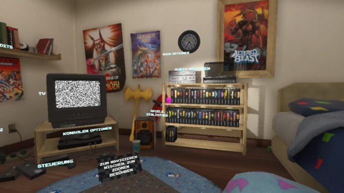 SEGA Mega Drive Classics bringt nicht nur alte Klassiker in euer Zimmer, sondern vielmehr euch in das Zimmer eines eingefleischten SEGA-Fans: Nach der Eingangssequenz findet ihr euch in einem virtuellen Raum wieder, dessen Wände mit Postern und Plakaten zu alten SEGA-Titeln geziert sind. Dieser Raum dient euch dabei gleichsam als das Menü, durch das ihr navigiert und in dem ihr euch so beispielsweise zum Regal bewegt, um dort aus der Spielesammlung von insgesamt 51 Titeln denjenigen auszuwählen, den ihr als nächstes zocken wollt. Kurz die Kassette aus der Verpackung genommen, ab vor den Fernseher, das Modul eingesteckt und schon geht der Spaß los – eine nette Aufmachung, die euch da anfangs erwartet, aber sicherlich nicht das entscheidende Kerngeschäft.
